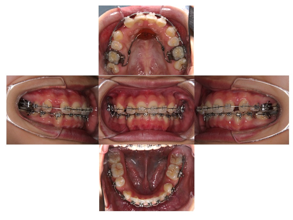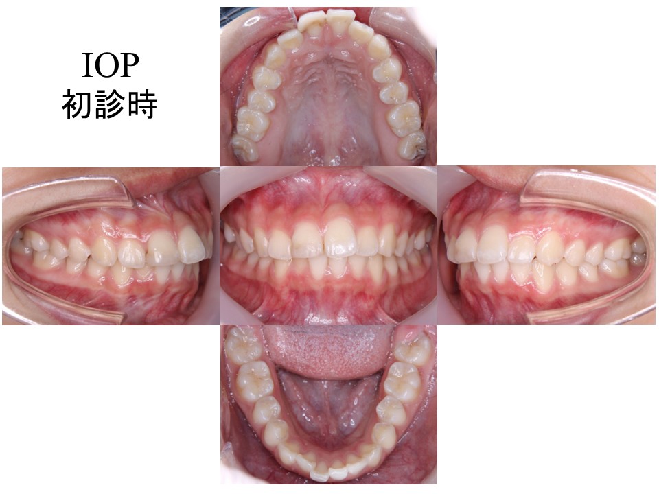 治療計画:上顎両側第一小臼歯、下顎右側第一小臼歯、下顎左側第二小臼歯を抜歯し、ワイヤーによる矯正治療を計画