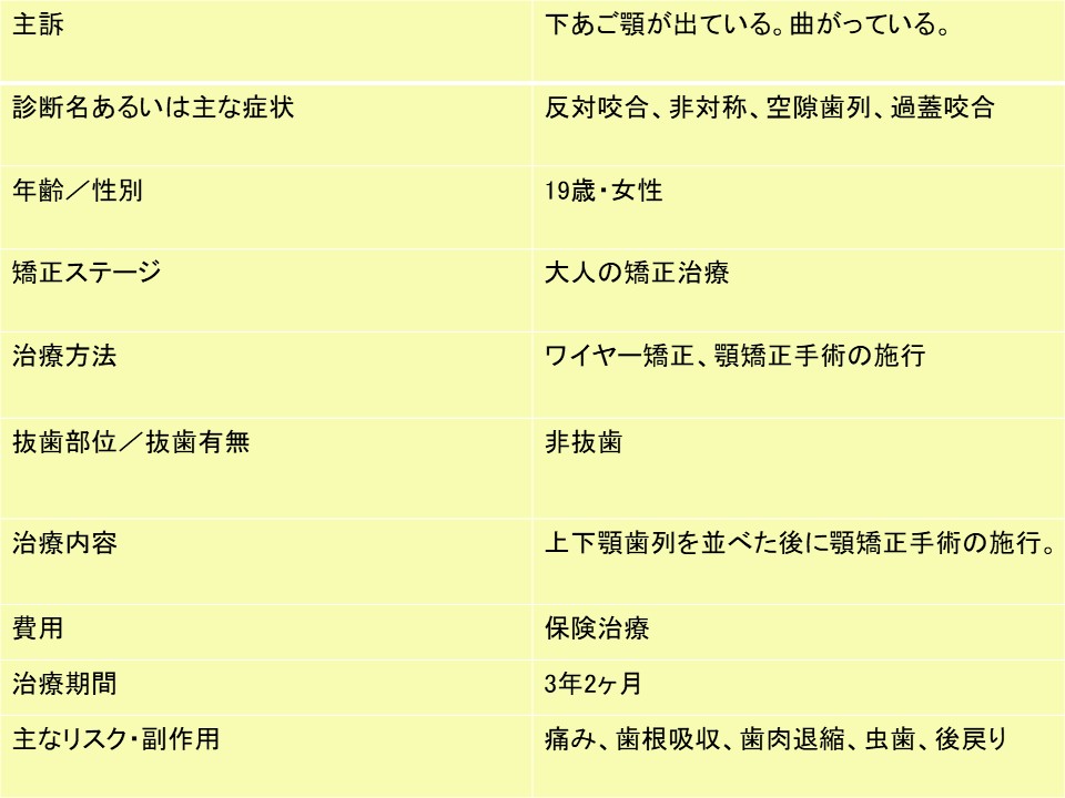 主訴:下あご下ている。あごが曲がっている。