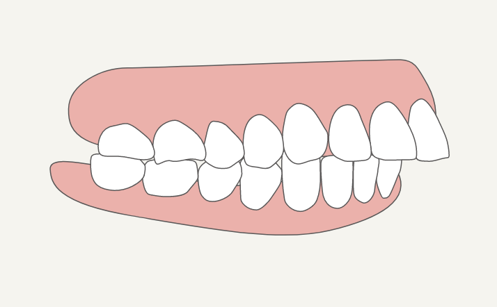 生まれつき上顎の骨が大きい場合や、下顎の骨が小さい場合など、顎の前後の位置関係によって出っ歯になります。