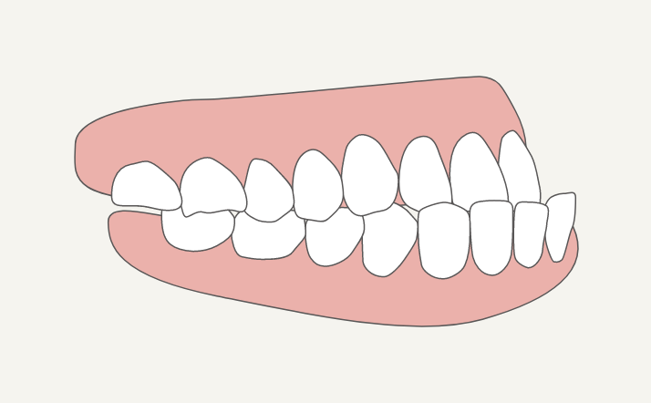 生まれつき上顎の骨が小さい場合や、下顎の骨が大きい場合など、顎の前後の位置関係によってなります。